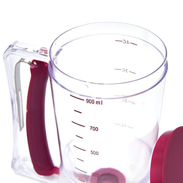Mērījumu atzīmes uz trauka ļauj viegli un konsekventi sadalīt porcijas. Precīzi pagatavojiet ideālas pankūkas, vafeles, omletes un daudz ko citu.