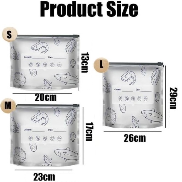 Ideāli piemērots svaigu produktu, jūras velšu, uzkodu, sausās pārtikas vai nepārtikas preču, piemēram, kosmētikas, mazu instrumentu un rokdarbu piederumu uzglabāšanai.