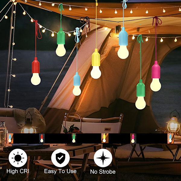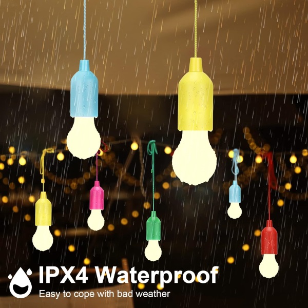 Izbaudiet HALOGLO ērtības telpās bez elektrības rozetēm. Šīs spuldzes bez elektrības vadiem un bez maksas ir lieliski piemērotas vietām, kur piekļuve elektrībai ir ierobežota vai tās nav, piemēram, veikalos, šķūņos, bēniņos vai āra terasēs. Vienkārši pakariniet tās, izmantojot komplektā iekļauto virvi, pavelciet auklu, lai tās ieslēgtu, un izbaudiet mirdzumu.