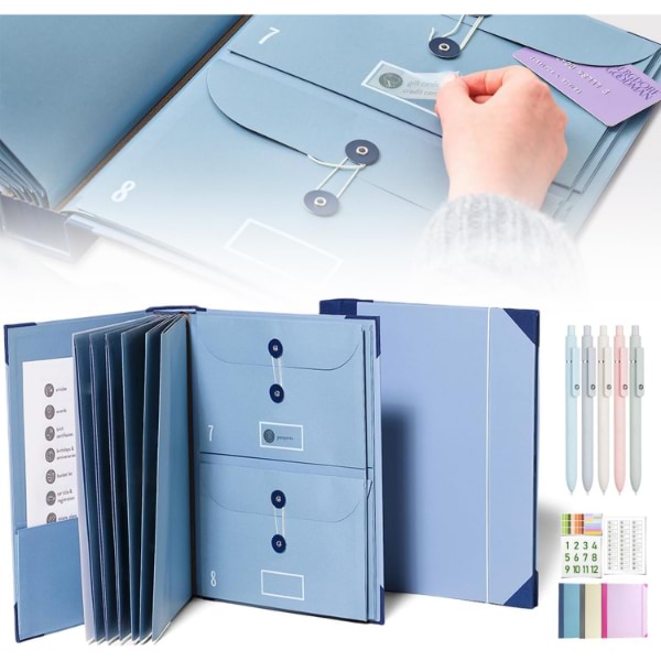 Iekļauj 10 paplašināmas aploksnes (6 pilna izmēra, 4 pusizmēra), kas var ietilpināt līdz 10 lapām katrā.