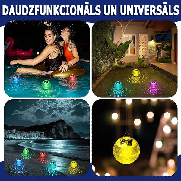 Ne tikai baseiniem! Novietojiet to jebkur – uz balkona, pie augiem vai dekoratīvā traukā. Šis daudzpusīgais saules apgaismojums pielāgojas jebkurai telpai, piešķirot mājīgumu un stilu jūsu mājai.