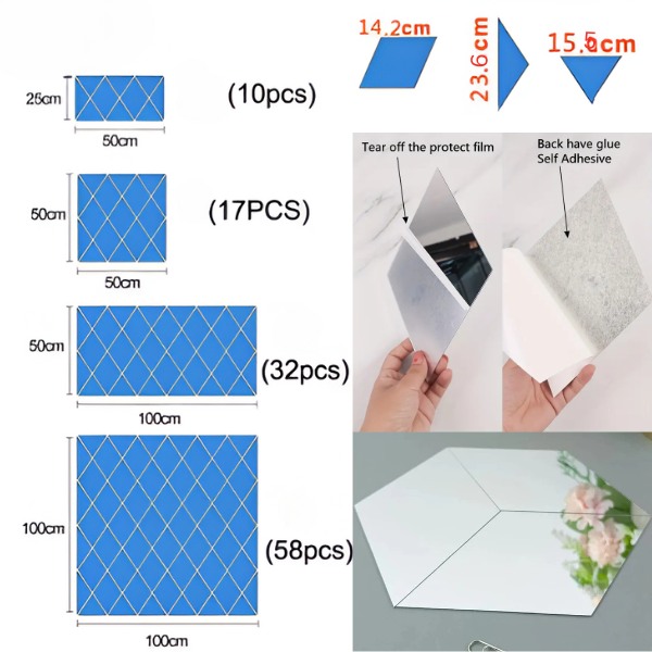 Materiāls: akrila spogulis ar aizsargplēvi (noņemiet pirms lietošanas).