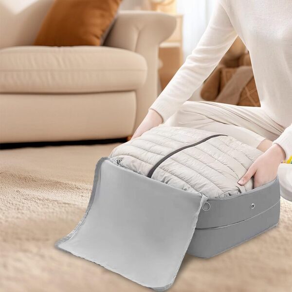 Viegli saspiediet drēbes, segas un citus priekšmetus bez vakuuma, atbrīvojot daudz papildu vietas jūsu koferī vai skapī.