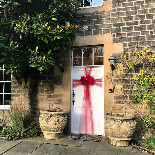 Rotājiet savas durvis ar mūsu greznajiem loku rotājumiem. Ar 750 cm garu lenti jūs varat veidot un piešķirt savām durvīm skaistu svētku stilu. Neatkarīgi no tā, vai tie ir Ziemassvētki, kāzas vai bērnu ballītes, RUBYBOW uzlabos svētkus.